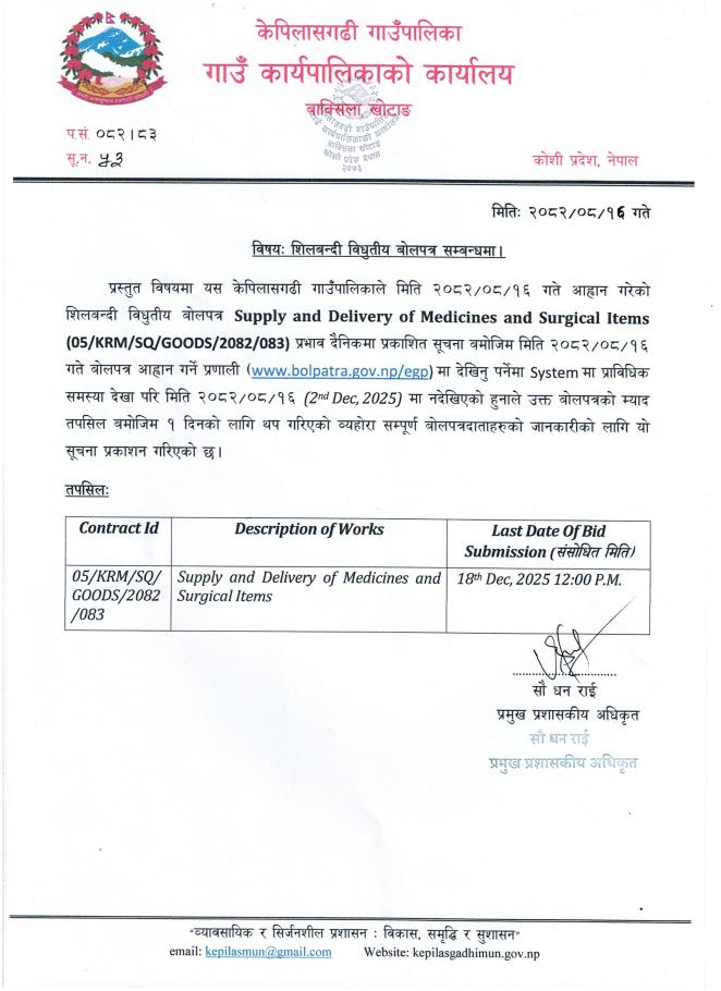 शिलबन्दी बोलपत्र सम्बन्धी सूचना !!!